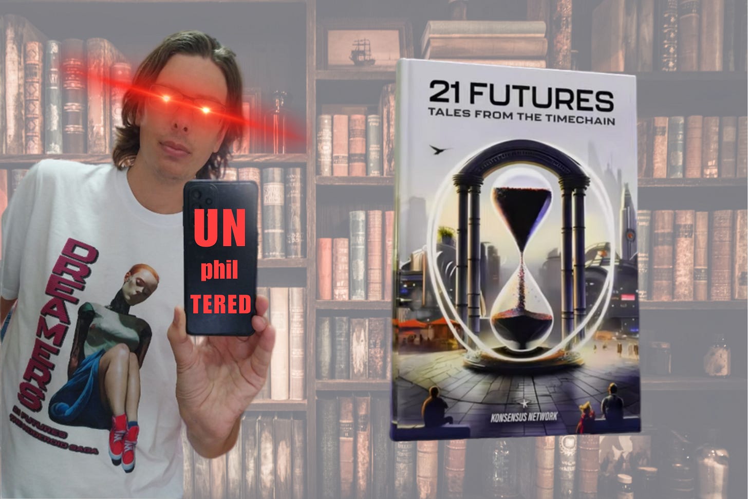I only wrote one of the stories in ‘21 Futures: Tales from the Timechain’, but bringing an anthology to market requires a LOT of time and input from the editor. I defined the concept, advertised the call for submissions, communicated with all the authors, drew up terms and contracts, selected and edited the stories, worked with the Konsensus Network (the publisher) on the book design, cover, and images, created a marketing plan, set up socials, then a website, blog submissions guidelines, merchandise, and more. I travelled to a conference in Madeira to promote the book and meet the publishing team (including Niko).